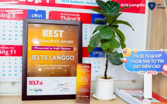 Mới đây, vượt qua nhiều tiêu chí đánh giá khắt khe, Hệ thống luyện thi IELTS LangGo vinh dự được trao tặng chứng nhận và kỷ niệm chương “Đối tác Vàng xuất sắc nhất" tại sự kiện IDP Partners Excellence Awards 2024.