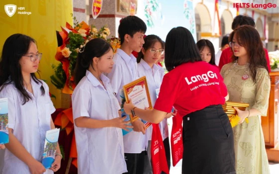 Trong sự kiện, IELTS LangGo tự hào trao tặng nhiều suất học bổng giá trị đến top 10 học sinh có điểm thi vào lớp 10 cao nhất. Đây không chỉ là sự ghi nhận xứng đáng cho nỗ lực không ngừng nghỉ, mà còn trở thành nguồn động lực mạnh mẽ để các em tiếp tục phấn đấu, đặt ra những mục tiêu cao hơn trong hành trình học tập phía trước. Bên cạnh đó, đội ngũ cố vấn nhà LangGo cũng gặp gỡ, chia sẻ với toàn thể học sinh nơi đây về phương pháp và định hướng học tập để chinh phục chứng chỉ tiếng Anh quốc tế “khó nhằn” này.