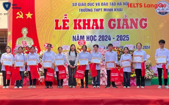 Tiếp nối hành trình “Unlock the IELTS with LangGo", mới đây, Hệ thống luyện thi IELTS LangGo có cơ hội ghé thăm thầy và trò THPT Minh Khai (Quốc Oai, Hà Nội) với nhiều hoạt động thú vị, bổ ích. Được biết, trong khuôn khổ sự kiện, Hệ thống đã trao tặng học bổng cho Top 10 thí sinh có điểm đầu vào cao nhất cùng hàng trăm phần quà giá trị như: Sổ, bút, voucher học thử miễn phí…